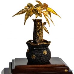 Cây kim ngân hay còn gọi là cây tiền mang ý nghĩa về sự giàu có và thịnh vượng. Cây kim ngân có 5 lá tượng trưng cho 5 yếu tố: Kim, Mộc, Thủy, Hỏa, Thổ. Đặt chậu cây kim ngân trong nhà hoặc nơi làm việc sẽ giúp gia chủ gặp nhiều may mắn, chiêu tài, tấn lộc. Đặc biệt với những người làm kinh doanh sẽ giúp họ có nguồn tài chính dồi dào, thuận lợi. Chậu cây kim ngân dát vàng được chế tác thủ công tỉ mỉ từ vàng lá 24k cùng đế gỗ óc chó tự nhiên cao cấp. Đây sẽ là món quà tặng sếp, tân gia hay khai trương đầy ý nghĩa