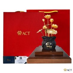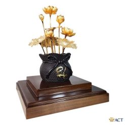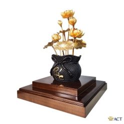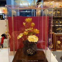 Từ lâu hoa sen đã gắn liền với văn hóa của người Việt. Việc trưng bày chậu sen sẽ mang lại cảm giác ấm cúng, thanh tịnh cho ngôi nhà bạn. Sản phẩm được chế tác trên chất liệu vàng lá đi kèm đế chất liệu gỗ cao cấp. Chậu sen 9 cành dát vàng được chế tác thủ công từ vàng lá 24k cao cấp, thân chậu được vẽ chữ Lộc thư pháp tạo nên điểm nhấn cho sản phẩm. Sản phẩm thích hợp làm quà tặng sếp, đối tác, quà tân gia, quà mừng khai trương hồng phát…
