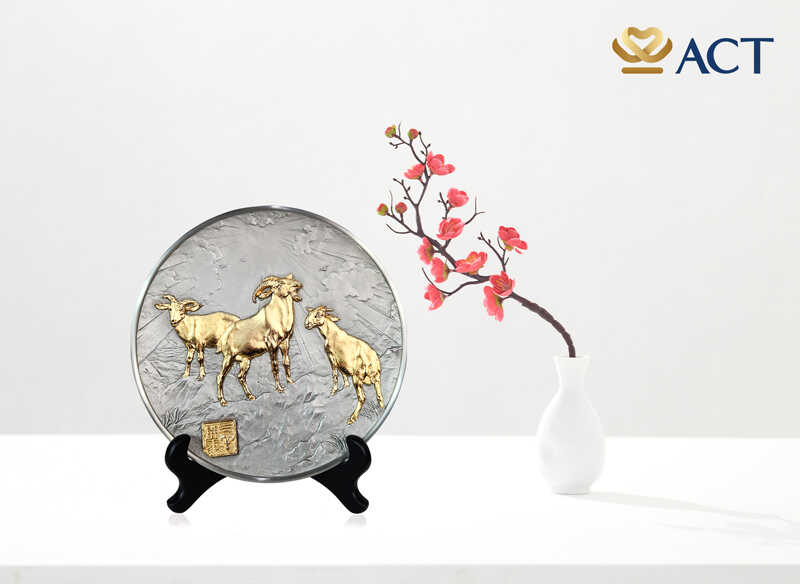 Đĩa Pewter Tam Dương Khai Thái Mạ Vàng 24k