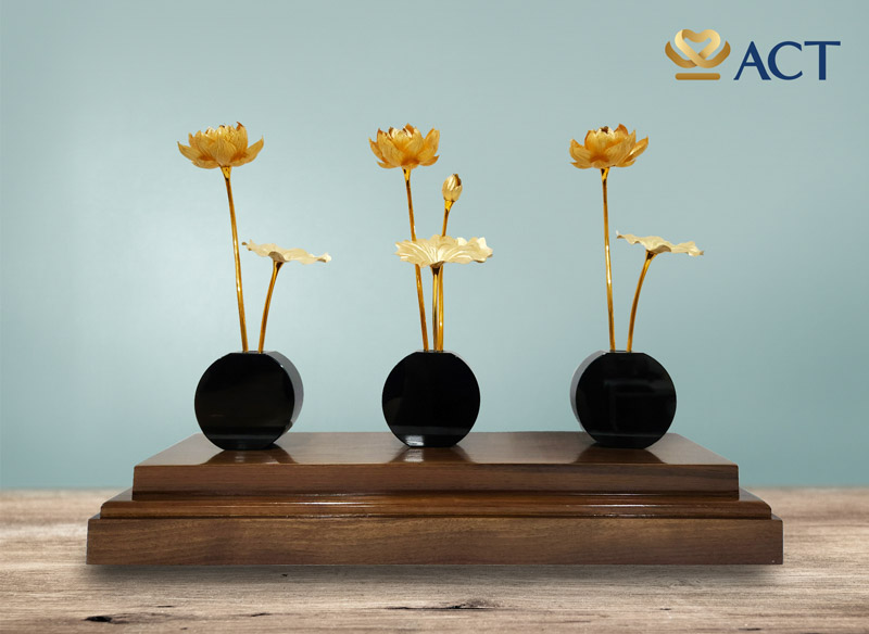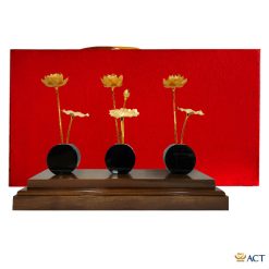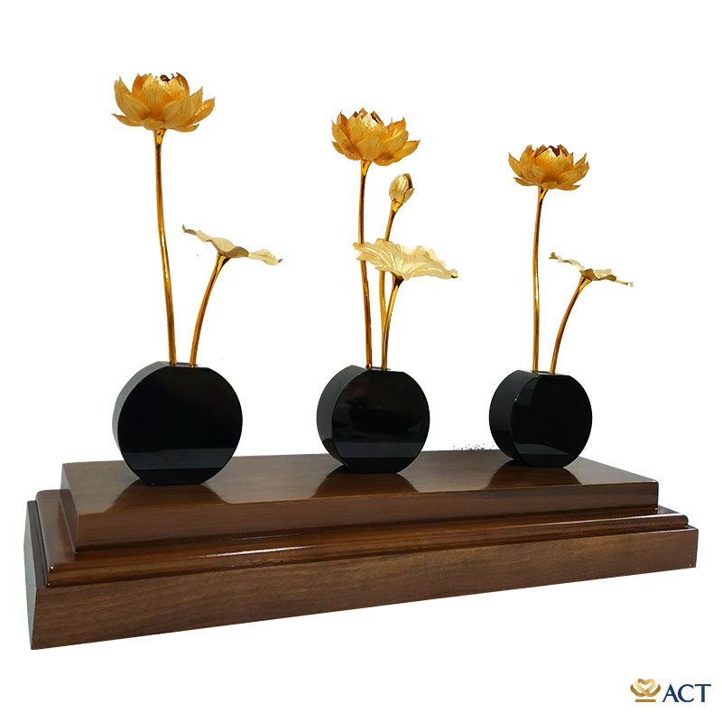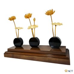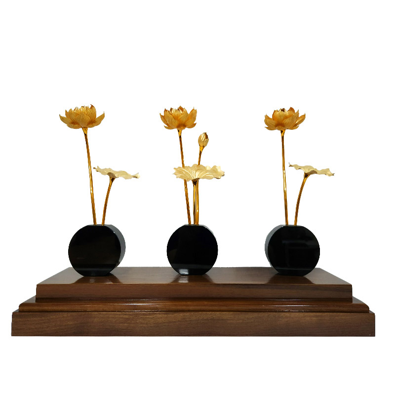 Trong phật giáo, số 7 là con số có ý nghĩa rất to lớn. Đó là số tiến (Phất) vì khi Đức Phật bước 7 bước đến cuộc đời, dưới chân Ngài nở 7 bông sen. Chậu sen 7 cành dát vàng đặt trong nhà hoặc nơi làm việc sẽ mang đến sự may mắn, thanh tịnh và an nhiên trong cuộc sống, công việc. Sản phẩm được chế tác trên chất liệu vàng lá đi kèm đế chất liệu gỗ cao cấp. Trên chậu cây được vẽ chữ Lộc thư pháp tạo nên điểm nhấn cho sản phẩm.