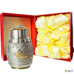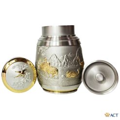 + Ý nghĩa:Hộp đựng trà Pewter với hình ảnh Tùng hạc diên niên được mạ vàng điểm xuyết tạo nên điểm nhấn ấn tượng và sự sang trọng của sản phẩm. Với hình ảnh chim hạc quần tùng xung quanh thân bình, đây sẽ là món quà ý nghĩa dành tặng Sếp, đối tác, khách hàng dịp Năm mới, Tân gia, sinh nhật, về hưu. Bạn cũng có thể sử dụng sản phẩm làm quà tặng người thân dịp 14 năm kỷ niệm ngày cưới thiếc. Hộp trà được thiết kế đặc biệt với nắp đẩy khí, giúp cho hộp trà kín khí, bảo quản trà giữ nguyên hương vị đượng lâu hơn. Sản phẩm được làm từ pewter cao cấp, không chì, đảm bảo an toàn cho người sử dụng