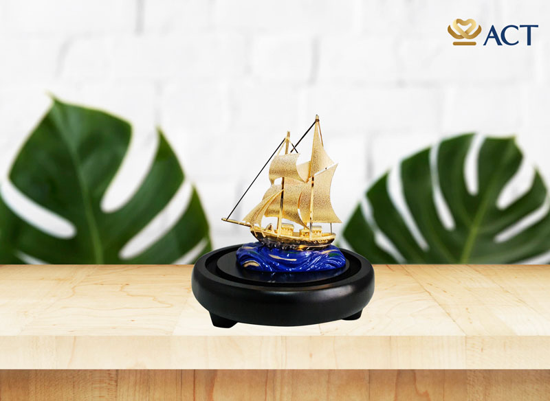 Thuyền buồm tượng trưng cho sức mạnh và thành công. Các doanh nhân thường đặt mô hình thuyền buồm trên bàn làm việc nhằm thu tài lộc, kích hoạt vượng khí và hanh thông tài vận. Mô hình thuyền buồm mini với kích thước nhỏ gọn rất thích hợp trưng bày trên bàn, tủ kệ. Sản phẩm được chế tác từ vàng lá 24k cao cấp đây sẽ là món quà tặng sếp, quà tân gia hay mừng khai trương ý nghĩa.