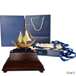 Thuyền buồm trang trí dát vàng là vật phẩm rất được ưa chuộng để bày trong nhà hoặc nơi làm việc. Sản phẩm mang ý nghĩa cầu mong tài lộc, hanh thông trong công việc. Với chất liệu vàng lá 24k cùng đế gỗ óc chó tự nhiên cao cấp đây không chỉ là vật phẩm tô đẹp cho ngôi nhà bạn mà còn là món quà tặng sếp, quà mừng tân gia, khai trương ý nghĩa