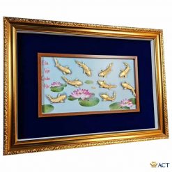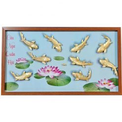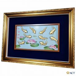 Bức tranh là hình ảnh chín chú cá chép đang bơi lội tự do trong được kết hợp với hình ảnh hoa sen tinh tế. Đây là bức tranh được nhiều người ưa chuộng và đánh giá cao về mặt phong thủy.