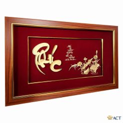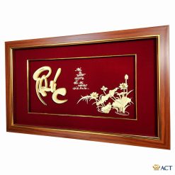Tranh Chữ Phúc Hoa Sen Dát Vàng 24k (40x65cm)