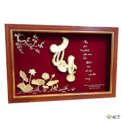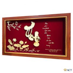 Tranh Chữ Thọ thư pháp dát vàng 24k (65x40cm)