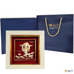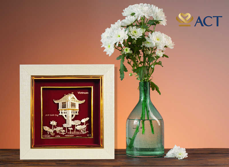 Tranh Chùa Một Cột dát vàng (24x24cm)
