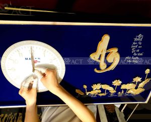 Một số hình ảnh thực tế tranh chùa một cột dát vàng được khách hàng tin tưởng lựa chọn làm quà tặng trong những dịp quan trọng: