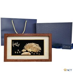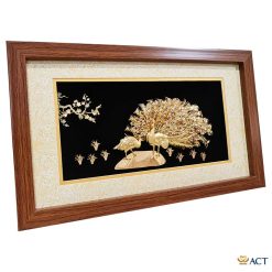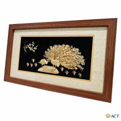 Ý nghĩa: Tranh đôi chim công hoa mẫu đơn dát vàng mang ý nghĩa về hạnh phúc, may mắn và thịnh vượng. Đôi chim công quấn quýt bên nhau tượng trưng cho tình cảm vợ chồng thủy chung son sắt. Bông mẫu đơn nở rộ cũng mang đến hạnh phúc và phú quý cho gia chủ.