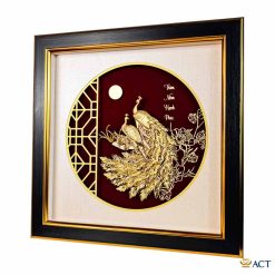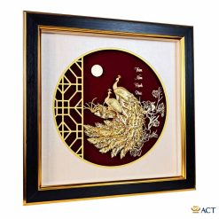 Ý nghĩa: Tranh đôi chim công hoa mẫu đơn dát vàng mang ý nghĩa về hạnh phúc, may mắn và thịnh vượng. Đôi chim công quấn quýt bên nhau tượng trưng cho tình cảm vợ chồng thủy chung son sắt. Bông mẫu đơn nở rộ cũng mang đến hạnh phúc và phú quý cho gia chủ. Tranh đôi chim công dát vàng 24k sẽ là món quà tặng sang trọng cho các dịp tân gia, khai trương, năm mới, cưới hỏi,…