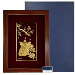 Ý nghĩa: Tranh đôi chim công dát vàng là biểu trưng cho tiền tài, quyền uy và sắc đẹp. Người xưa cho rằng lông chim công có thể hút năng lượng từ ánh sáng mặt trời để điều hòa, cân bằng âm dương. Treo tranh đôi chim công dát vàng trong nhà sẽ đem lại may mắn, thành công và thịnh vượng. Sản phẩm thích hợp làm quà tặng người thân, bạn bè hay sếp của bạn nhân dịp cưới, kỷ niệm ngày cưới, tân gia hay sinh nhật…