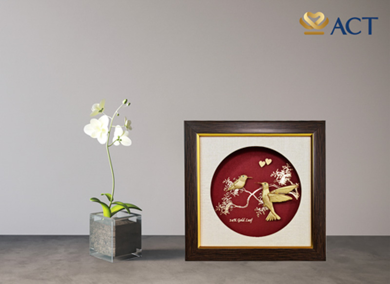 Tranh đôi chim ruồi dát vàng (20x20cm)