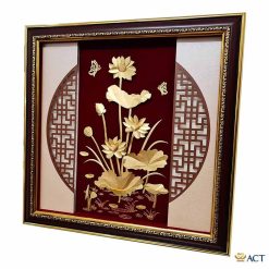 Hoa sen mang vẻ đẹp thuần khiết và một ý chí sống mãnh liệt. Hình ảnh hoa sen đi vào thơ ca, nhạc họa và trở thành một trong những biểu tượng văn hóa của Việt Nam. Bức tranh hoa sen dát vàng được chế tác vô cùng sinh động, thể hiện nét đẹp của những đóa sen thanh khiết.