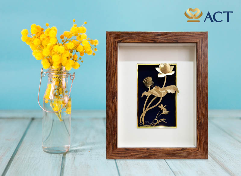 Hoa sen mang vẻ đẹp thuần khiết và một ý chí sống mãnh liệt. Hình ảnh hoa sen đi vào thơ ca, nhạc họa và trở thành một trong những biểu tượng văn hóa của Việt Nam. Bức tranh hoa sen dát vàng được chế tác vô cùng sinh động, thể hiện nét đẹp của những đóa sen thanh khiết.