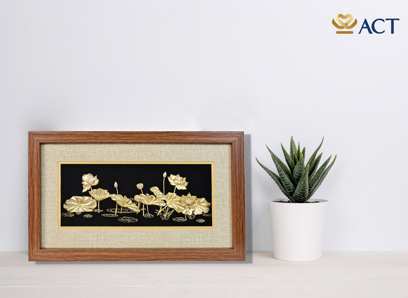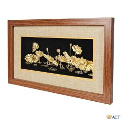 Hoa sen mang vẻ đẹp thuần khiết và một ý chí sống mãnh liệt. Hình ảnh hoa sen đi vào thơ ca, nhạc họa và trở thành một trong những biểu tượng văn hóa của Việt Nam. Bức tranh hoa sen dát vàng được chế tác vô cùng sinh động, thể hiện nét đẹp của những đóa sen thanh khiết.