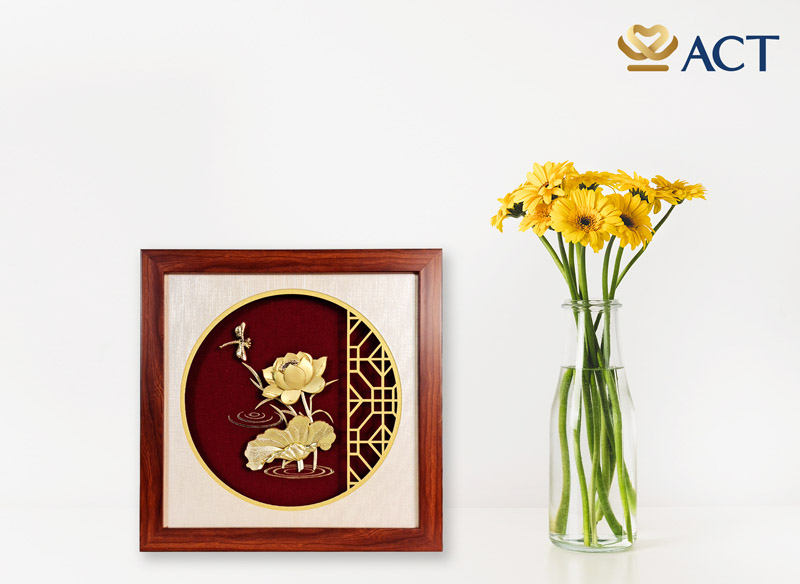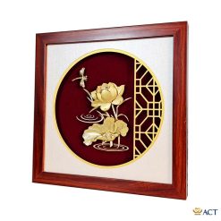 Hoa sen mang vẻ đẹp thuần khiết và một ý chí sống mãnh liệt. Hình ảnh hoa sen đi vào thơ ca, nhạc họa và trở thành một trong những biểu tượng văn hóa của Việt Nam. Bức tranh hoa sen dát vàng được chế tác vô cùng sinh động, thể hiện nét đẹp của những đóa sen thanh khiết.