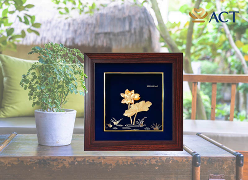 Hoa sen mang vẻ đẹp thuần khiết và một ý chí sống mãnh liệt. Hình ảnh hoa sen đi vào thơ ca, nhạc họa và trở thành một trong những biểu tượng văn hóa của Việt Nam. Bức tranh hoa sen dát vàng được chế tác vô cùng sinh động, thể hiện nét đẹp của những đóa sen thanh khiết.