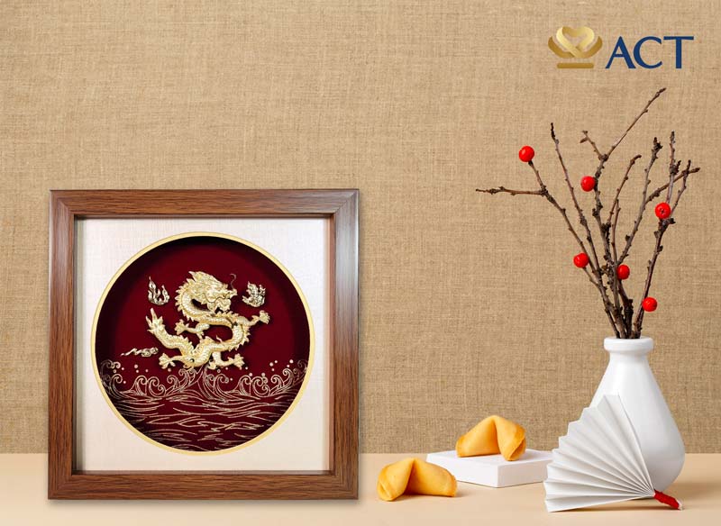 Rồng được coi là con vật linh thiêng, đại diện cho quyền uy, sức mạnh và thịnh vượng. Ngoài ra, Rồng còn biểu tượng của phái nam. Treo bức tranh dát vàng Rồng vờn ngọc trong nhà hay phòng làm việc sẽ giúp khai vận cát tường, tăng cường năng lượng cho trong đường công danh và cuộc sống.
