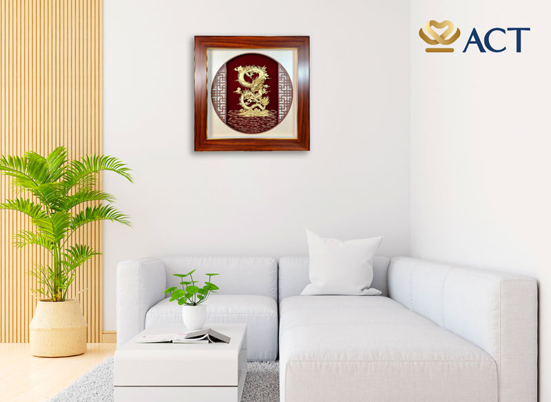 Rồng được coi là con vật linh thiêng, đại diện cho quyền uy, sức mạnh và thịnh vượng. Treo bức tranh dát vàng Rồng vờn ngọc trong nhà hay phòng làm việc sẽ giúp khai vận cát tường, tăng cường năng lượng cho trong đường công danh và cuộc sống.