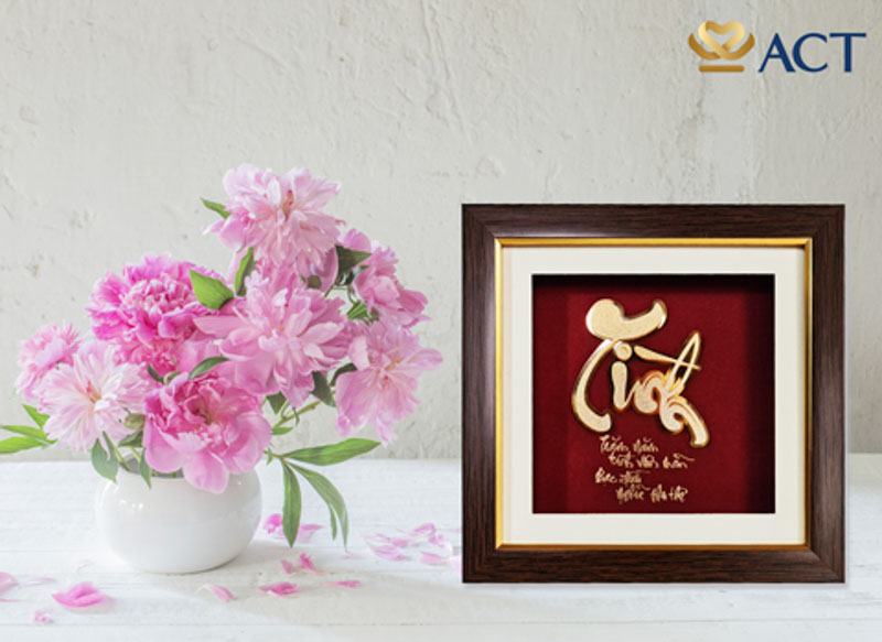 Tranh Chữ Tình Dát Vàng