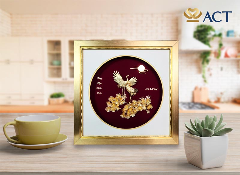 Tranh Tùng Hạc Dát Vàng (30x30cm)