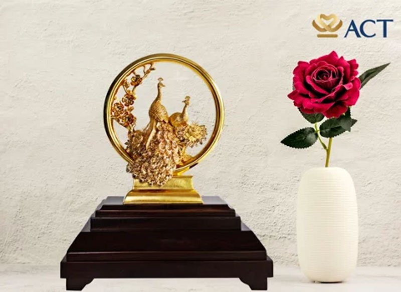 Xem thêm video chi tiết Tượng đôi chim công và hoa mẫu đơn dát vàng 24K