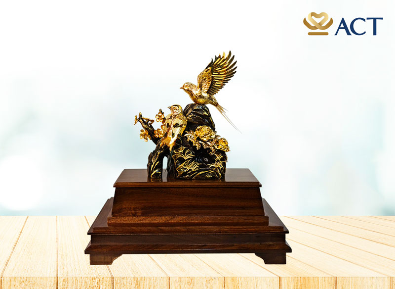 Tượng Đôi Chim Uyên Ương Dát Vàng (Mẫu 2)