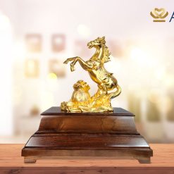 Từ xa xưa, Ngựa là con vật trung thành và gần gũi với con người. Ngựa cũng tượng trưng cho sức mạnh và ý chí. Các doanh nhân thường bày tượng ngựa để bàn trong phòng làm việc để thu hút tài lộc và may mắn. Với ý nghĩa đó mà mẫu Tượng ngựa để bàn dát vàng thường rất được ưa chuộng lựa chọn làm quà tâm gia, quà mừng khai trương hay quà tặng sếp, đối tác hay các lãnh đạo…