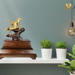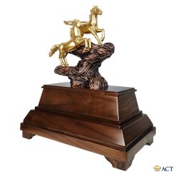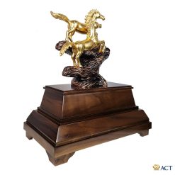 Tượng song mã dát vàng với hình ảnh đôi ngựa đang chạy quấn quýt bên nhau. Ngựa được biết đến là loài vật hiền hoà, chăm chỉ, thông minh. Trong phong thuỷ ngựa tượng trưng cho tiền tài, thăng tiến trong việc, mang ý nghĩa quan trọng đối với các doanh nhân. Đặt tượng song mã trên bàn làm việc sẽ mang đến tài lộc, may mắn cho gia chủ. Đây là món quà ý nghĩa tặng sếp dịp thăng chức hoặc quà tặng đối tác, khách hàng quan trọng.